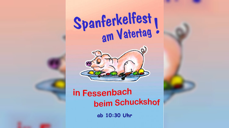Über die Grenzen Fessenbachs hinaus ist es bekannt, das Spanferkelfest des Fessenbacher Musikvereins am Vatertag, 18. Mai ab 10.30 Uhr am Schuckshof. Tolles Ambiente, leckeres Spanferkel und gute Unterhaltung ist garantiert.